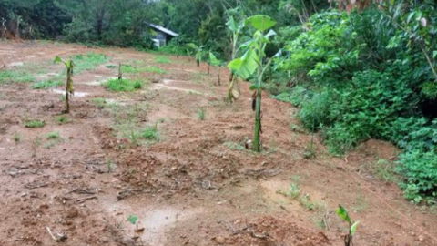 4月3日、開園の日、代表森田はじめみんなで、島バナナの苗を13本植えました。 この苗は、遺伝子分析をして「島バナナ」と証明された酒井さんの島バナナ畑で育ったものを譲り受けたものです。 その日から4月中、沖縄は雨の日が多く、畑は常に水浸しで、島バナナが根を這わすには好環境でした。 それ...