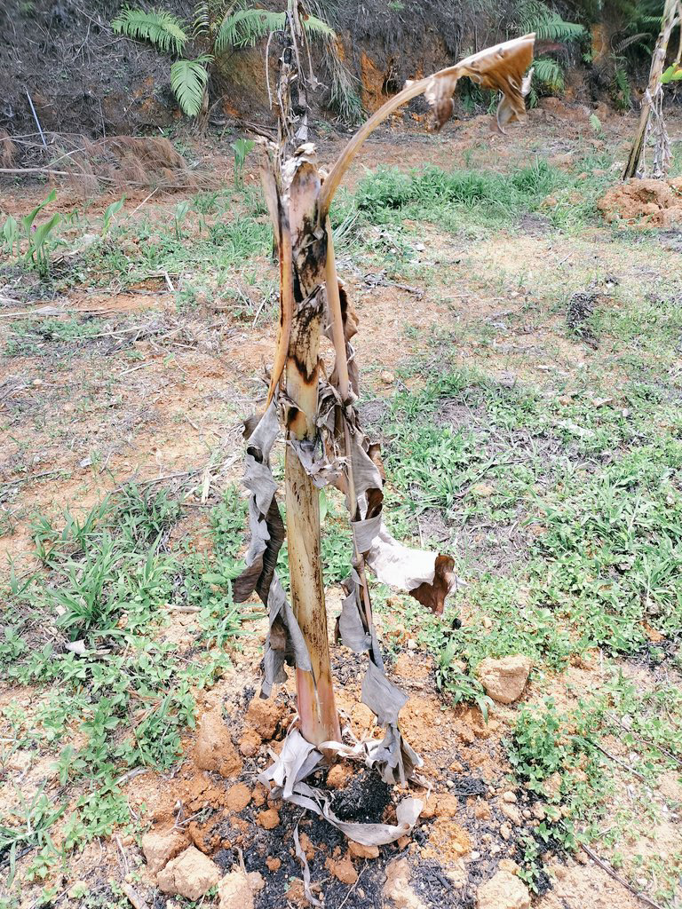 活着するまでは葉が少しづつ枯れていくので、根が張りやすくなるよう水やりして島バナナをサポートし、順調に育っています。