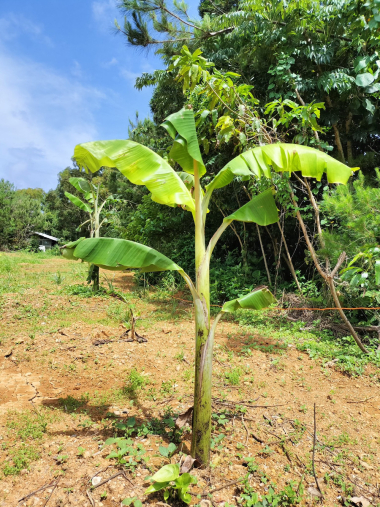その列の島バナナは、遺伝子分析はしていませんが、過去に実ったときの身の形状、株径・葉の形状を瀬戸田さんが見て、島バナナと推定される苗を、お知り合いの農家さんの畑からいただきました。