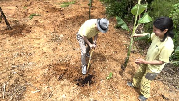 この農場では、無施肥に近い栽培方法で“小さな島バナナ”(実の長さ10cm未満)再現を目指しています。