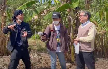 多種類のバナナを栽培している畑で、ポッドキャスト「森田さんのバナナ予報」の収録が行われました。