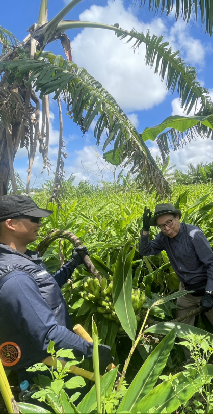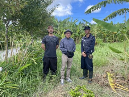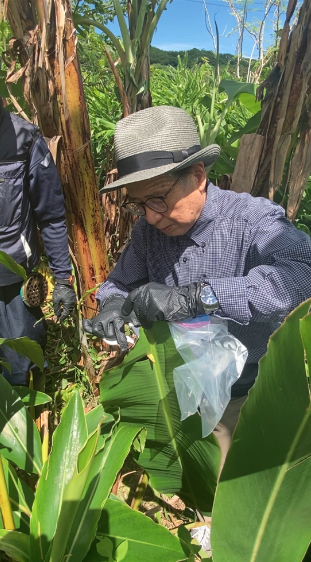 島バナナ協会では、島バナナの分類と定義(基準)作りの取り組みを行っており、それに関する遺伝子(DNA)分析のため、寛尚ファームさんの島バナナの葉の採取もさせていただきました。