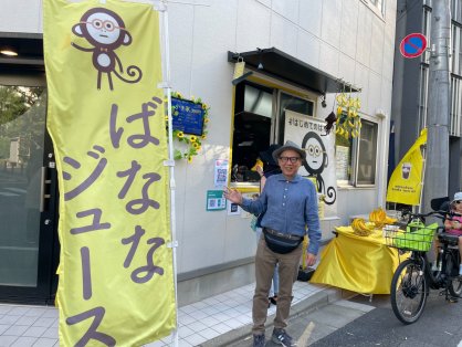 ポッドキャスト『森田さんのバナナ予報!』で対談したタナカバナナの田中社長からのご紹介で、タナカバナナさんが経営する東京、銀座のバナナジューススタンド「はじめてのばなな」へ行ってきました。