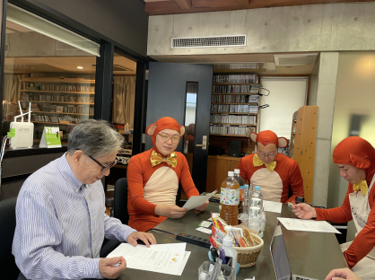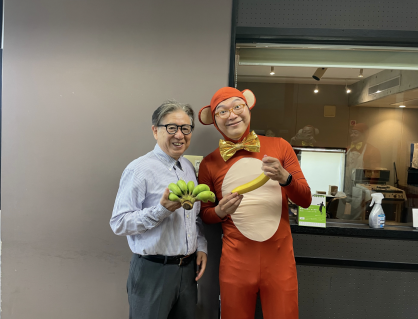 「バナナの日」を盛り上げるため、田中社長とスタッフのみなさんは、お猿のコスチュームを着ていらっしゃいまいした!