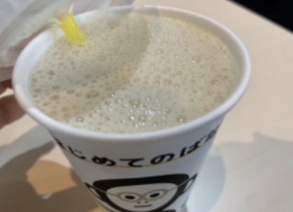またスタッフ猿さんが、その場でバナナをミキサーにかけ、牛乳や豆乳と調合して、できたて新鮮なバナナジュースを用意してくださいました。