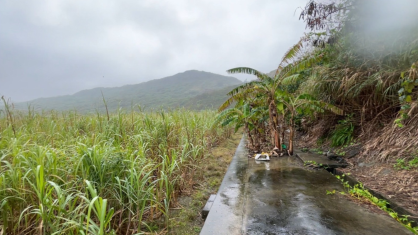 この畑では、山沿いの塀の上に島バナナが一列に並んだ状態で植えられており、山から栄養分が降りてきやすい箇所がありました。