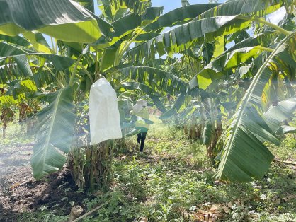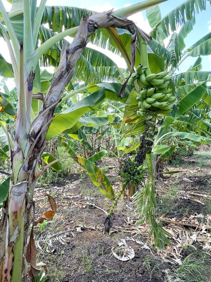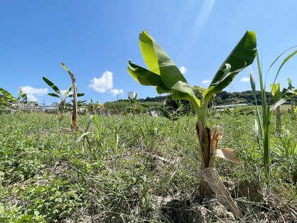 いとまんピースファームさんは、宮古島の上地さんの農場から株分けされ、1本1本植えて、2年経った今、10農場1000本にもなった島バナナ株を育てています。
