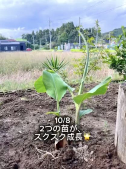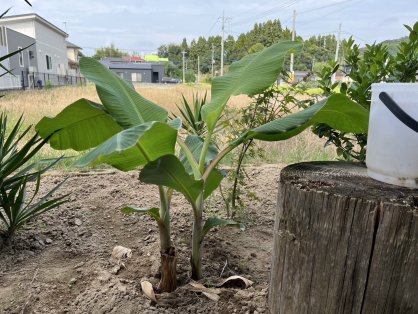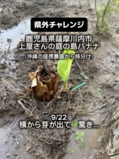 鹿児島県薩摩川内市の上屋さんに島バナナを植えていただき1ヶ月半の経過 2025/10/21