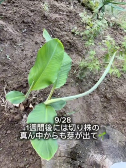 植栽後、9月22日には茎の横側から新芽が現れ、9月28日には切り株からも芽が確認されました。