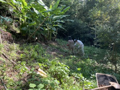 鹿児島県薩摩川内市の折小野さんの畑に島バナナ株分け定植 2025/08/24