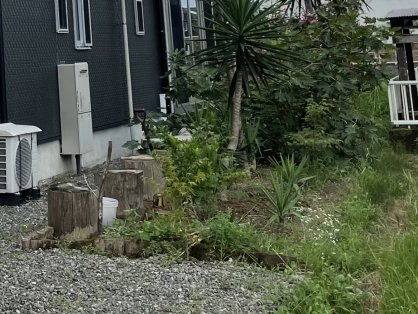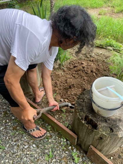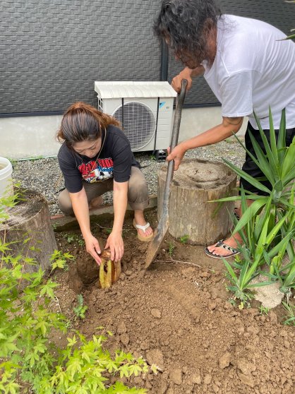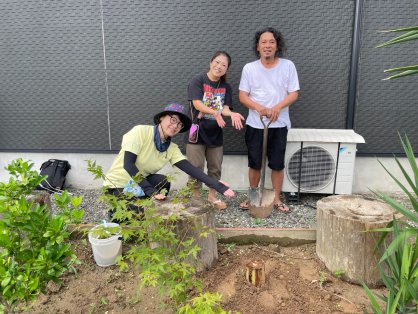 鹿児島県薩摩川内市の上屋さんの庭に島バナナ株分け定植 2025/08/24