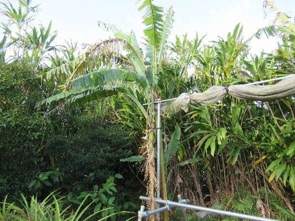 島バナナの第1期株は新しい葉がほぼ出なくなり、古い株が枯れていくので、葉が少なくなっています。